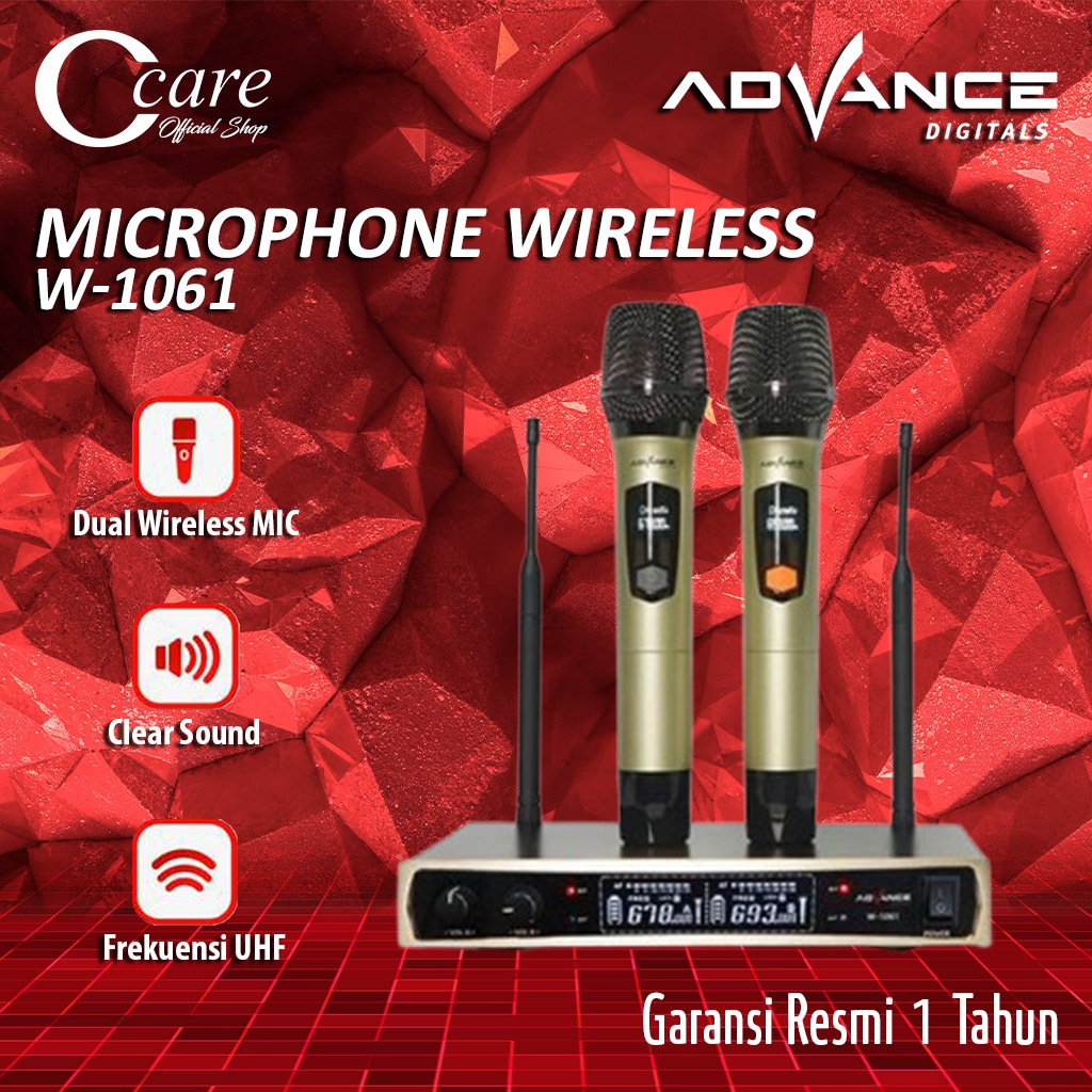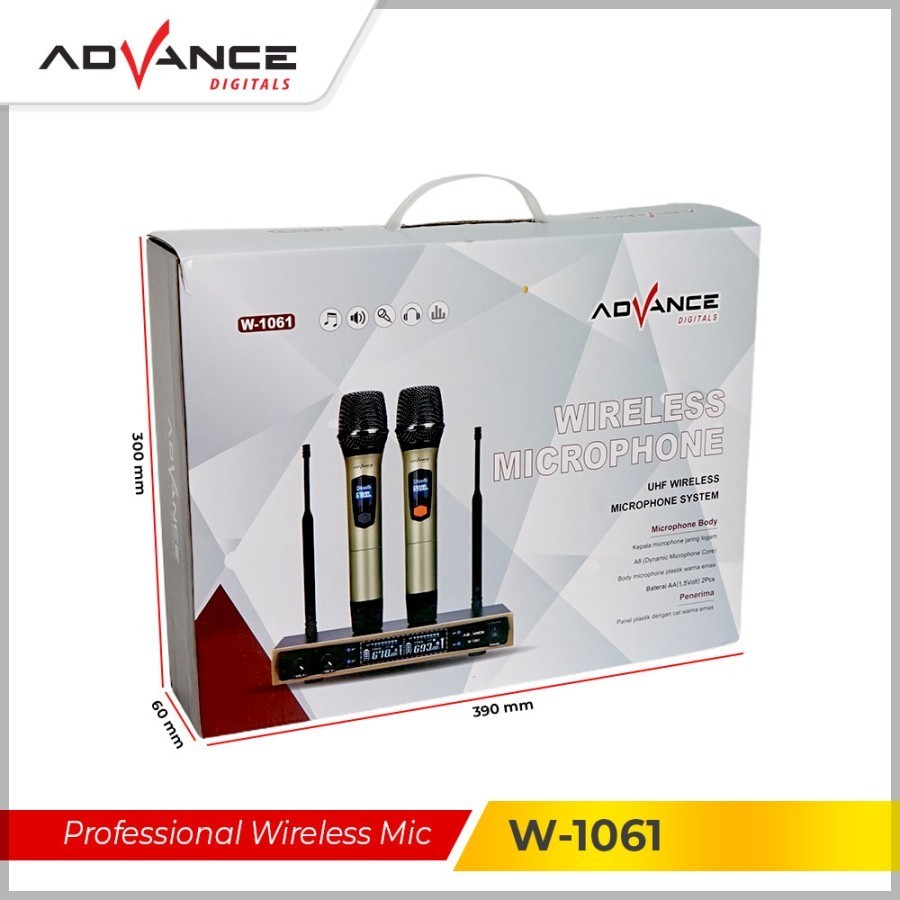 Mic Advance W-1061 Microphone Double Wireless + Receiver Garansi Resmi FREE MASKER CCARE