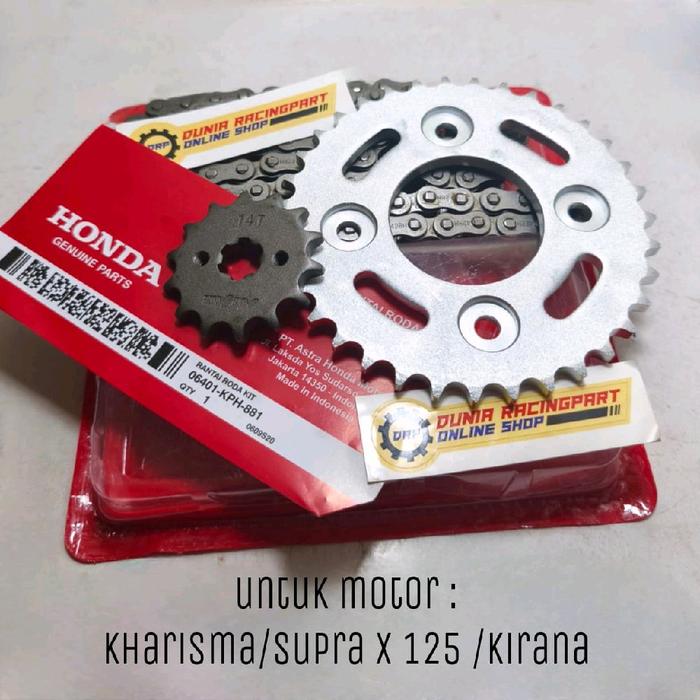 GEAR SET KHARISMA SUPRA X 125 KIRANA SUPRA FIT NEW SEPAKET RANTAI KPH MOTOR KARBU MOTORCYCLE