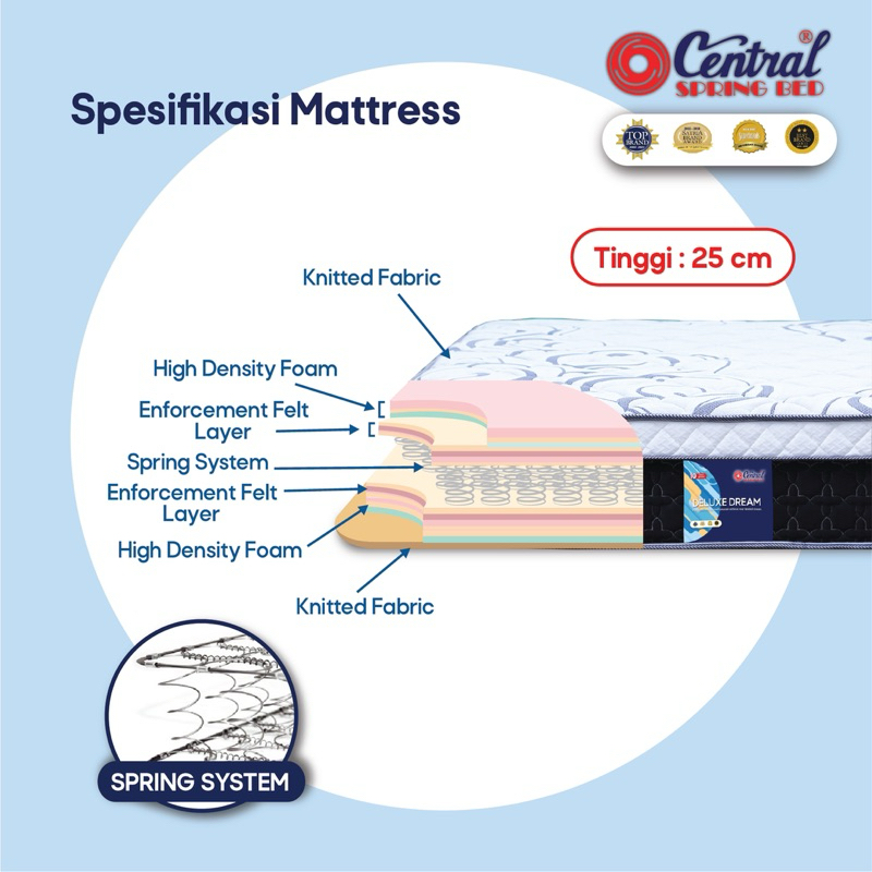 Kasur Springbed Mattrass Central Deluxe Dream Tebal PROMO