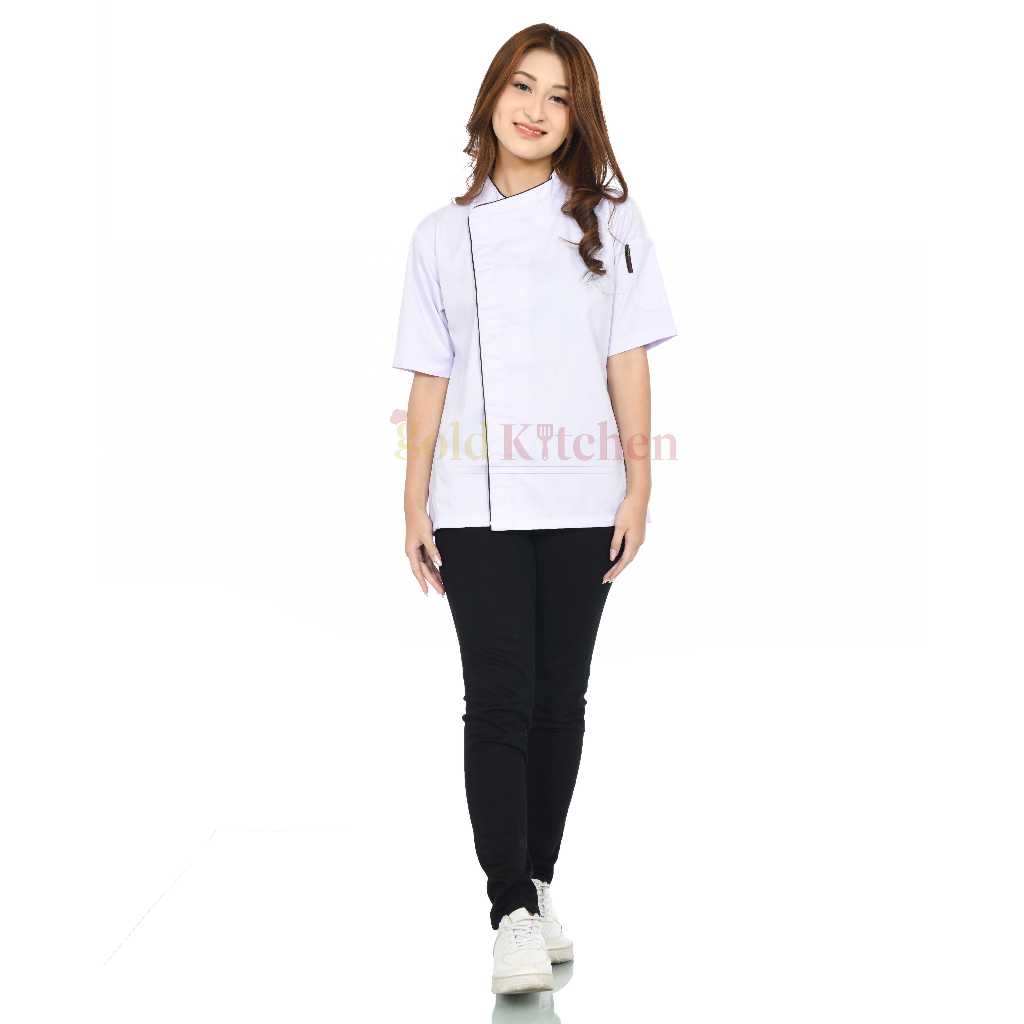 Baju Chef Baju Koki Chef Jacket Pria Wanita Lengan Pendek Model Mandarin Std Gold Kitchen