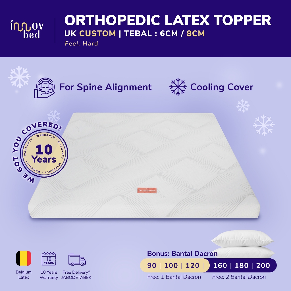 Innovbed Topper Kasur Orthopedic Full Latex Cooling Cover - HARD 8cm Garansi 10 Tahun