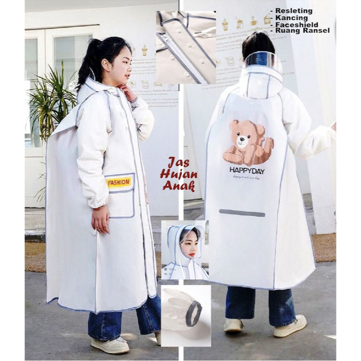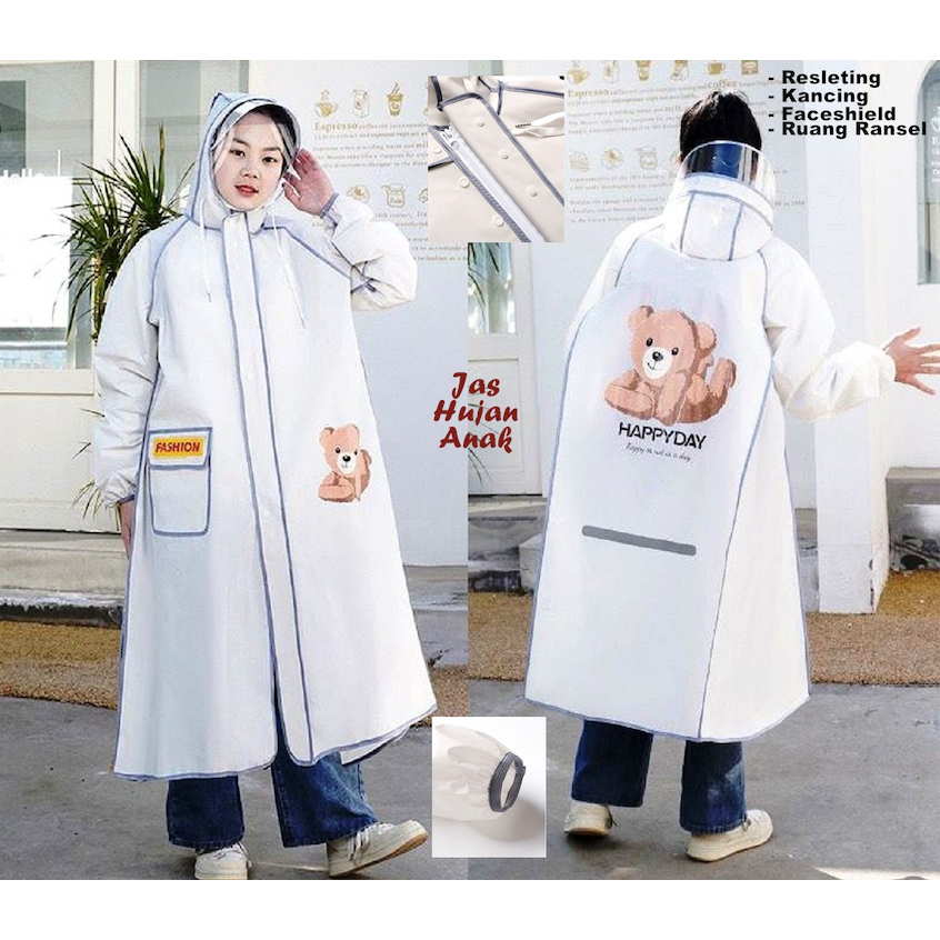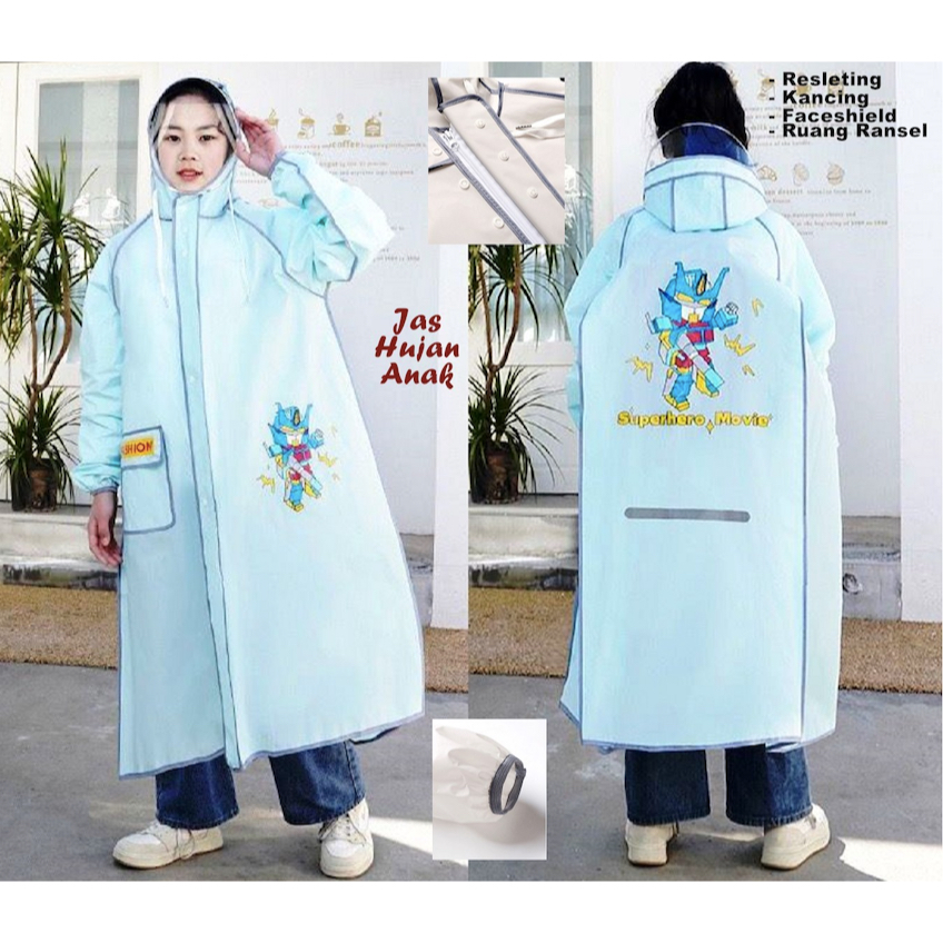 ZIPPER Jas Hujan Anak HAPPYDAY SUPERHERO model resleting dan kancing TERMASUK FACESHIELD Kids Raincoat Mantel Hujan Anak