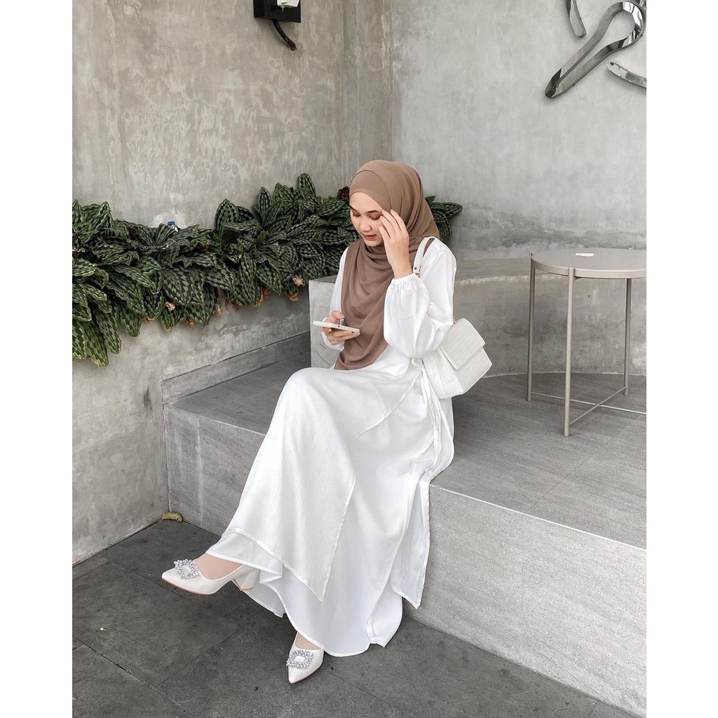 Zafaoutfit Raya Dress Putih - Gamis Wanita Syar’i untuk Umroh Haji