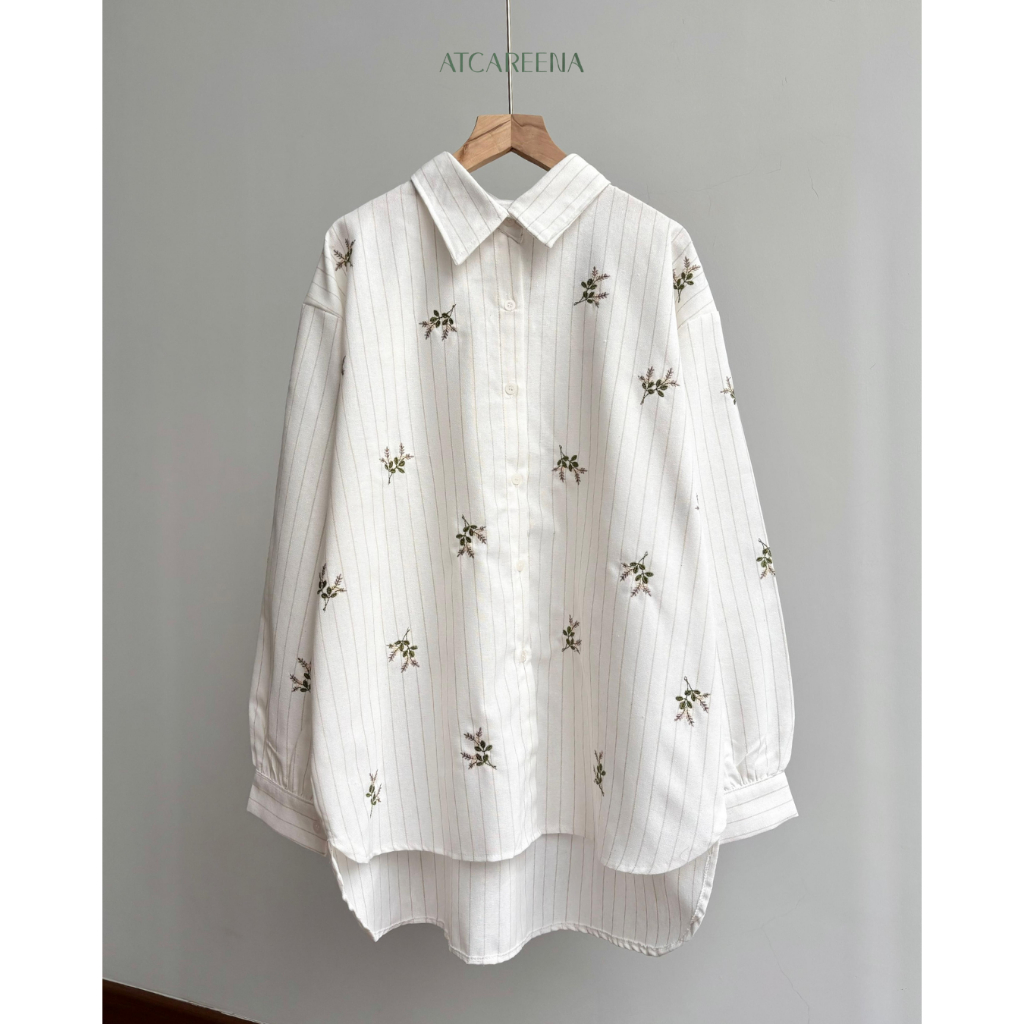 Vivi Linen Embroidery Kemeja wanita premium - Simple modern look atCareena - linen shirt with embroirdery - kemeja wanit