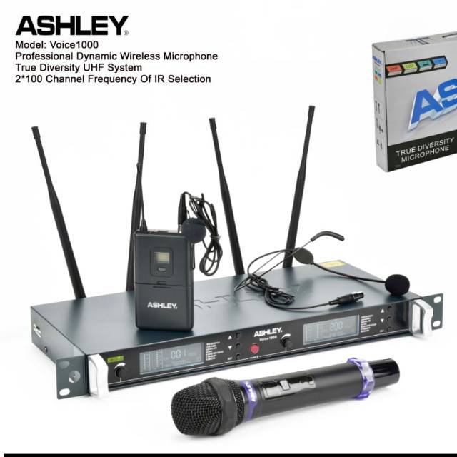 Mic Wireless Ashley VOICE 1000 Original Pegang - Jepit - Bando