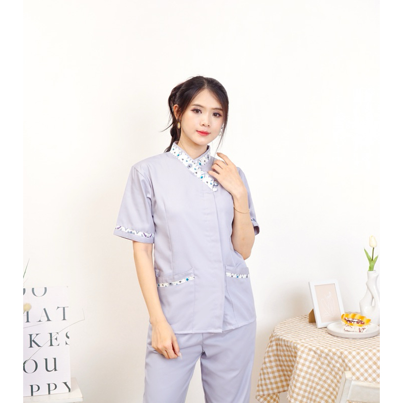 MEGAN Silver Grey seragam baju suster/ nanny uniform/ seragam hotel spa