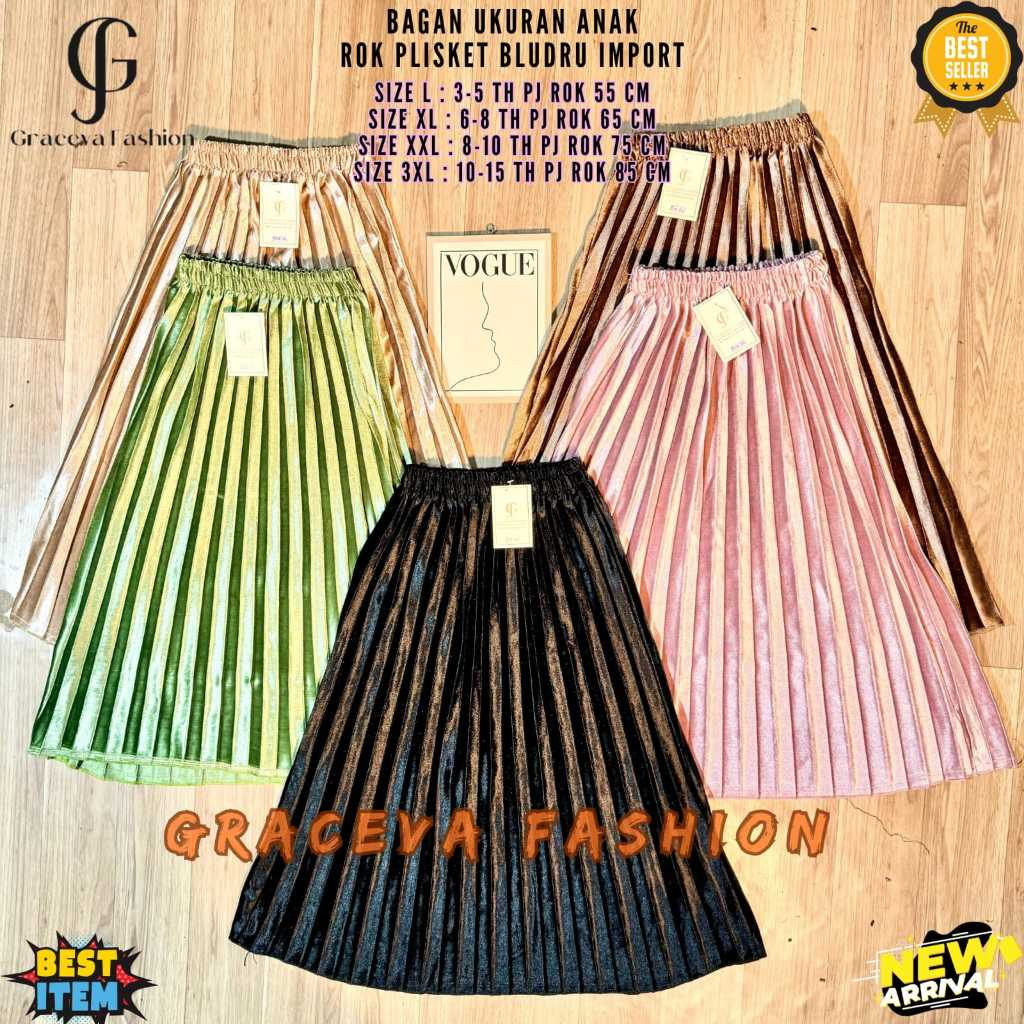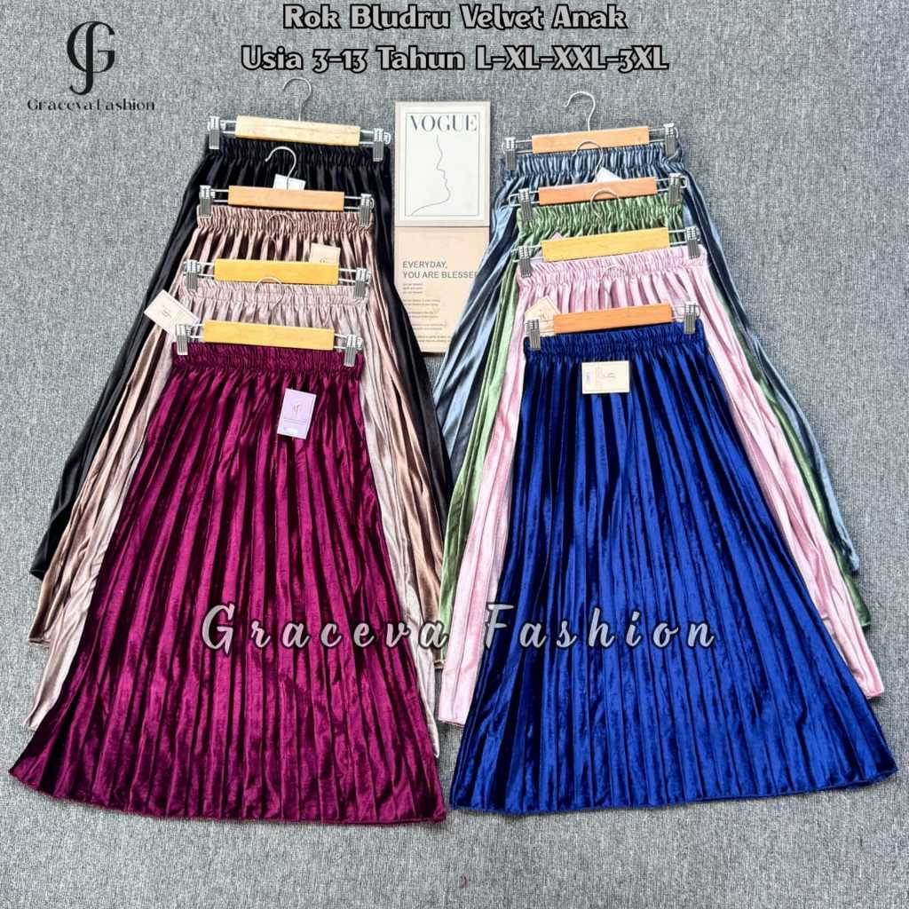 Graceva Skirt - Rok Bludru Anak Plisket Premium | Pleated Skirt Kids Women Bludru Velvet Mewah