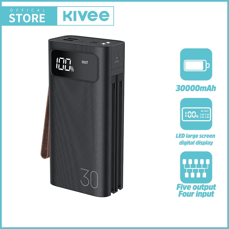Kivee Powerbank Portabel Pt302P Black 30000Mah With Kabel Data Fast Charging Multi-Output Asli