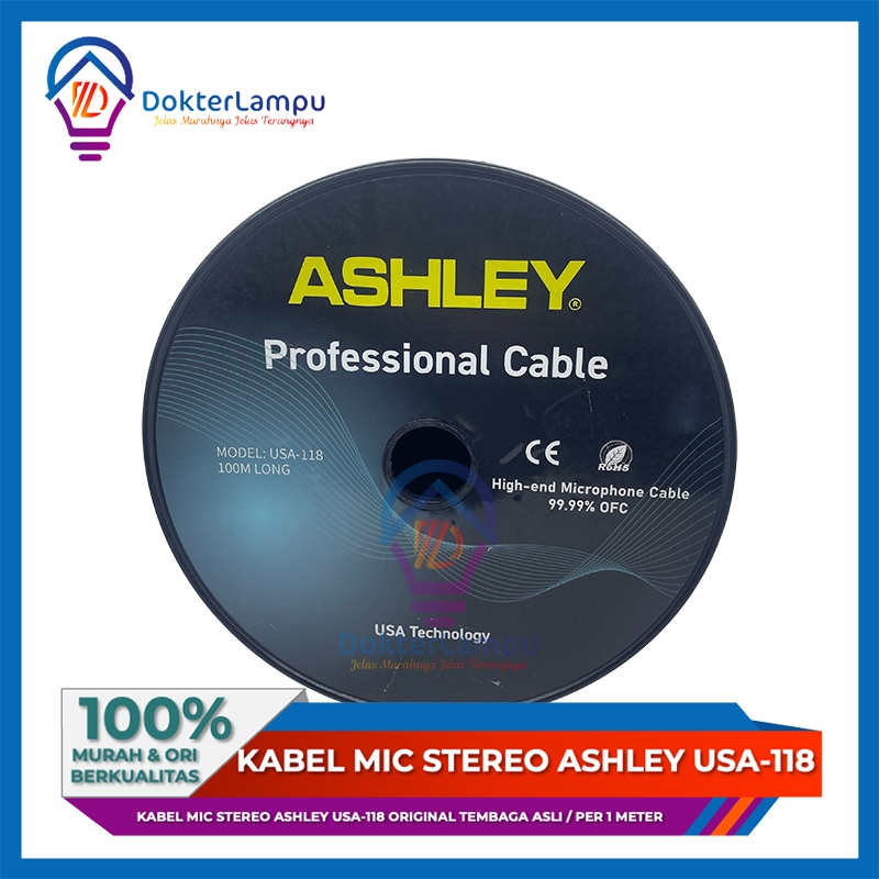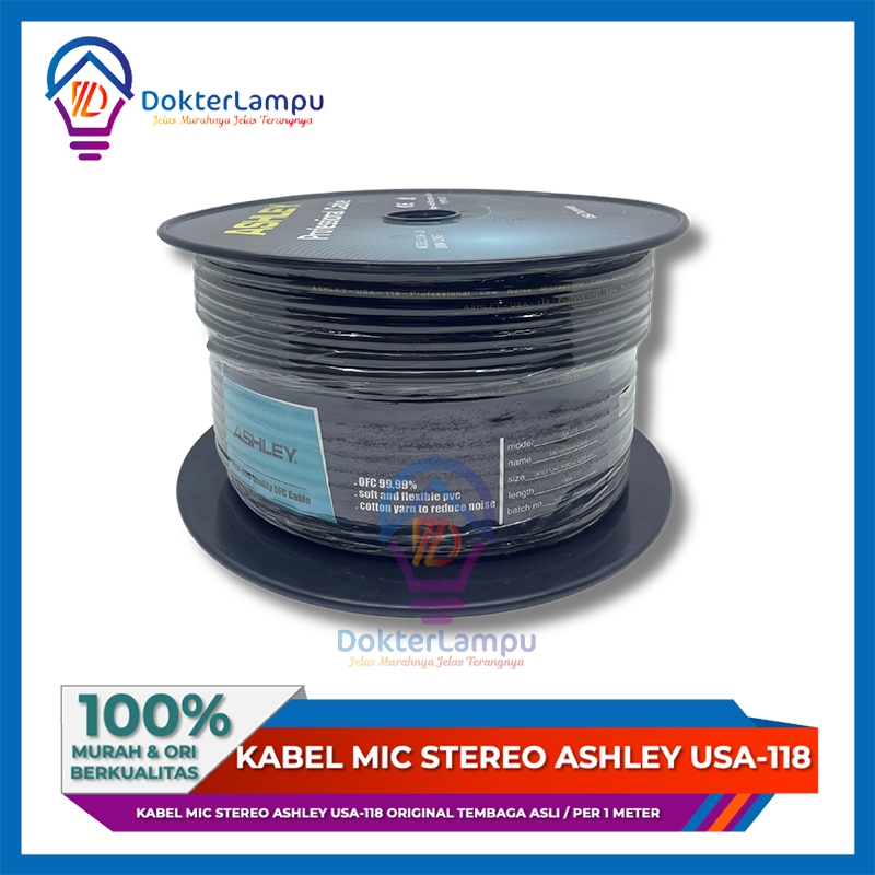 KABEL MIC MICROPHONE STEREO ASHLEY USA-118 ORIGINAL TEMBAGA ASLI / PER 50 METER