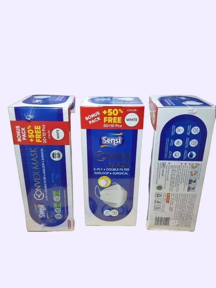 Masker Sensi Convex mask 5 ply Earloop isi 30 - ABU 20+10