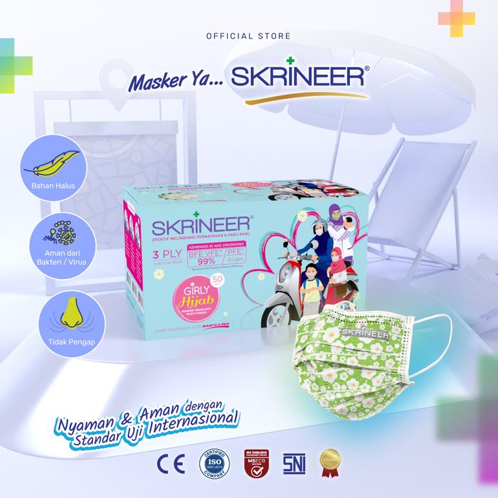 Skrineer Hijab Masker Polkadot 3ply Headloop Box isi 50 pcs