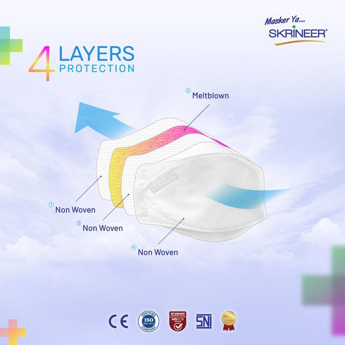 Skrineer Masker Fish Shape 4 ply Earloop White isi 10 pcs