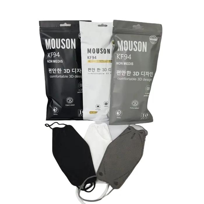 BUNDLE MASKER KF94 MOUSON PREMIUM KF94 (ISI 50 / 100 PCS + POUCH) - Hitam 100 PCS