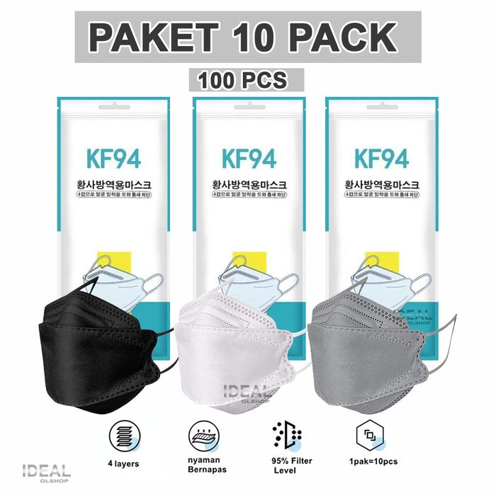 100 Pcs Masker KF94 Korea Paket 10 Pack - KF HITAM 10PACK