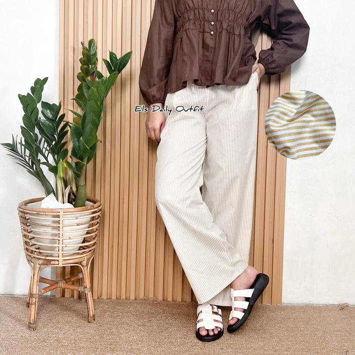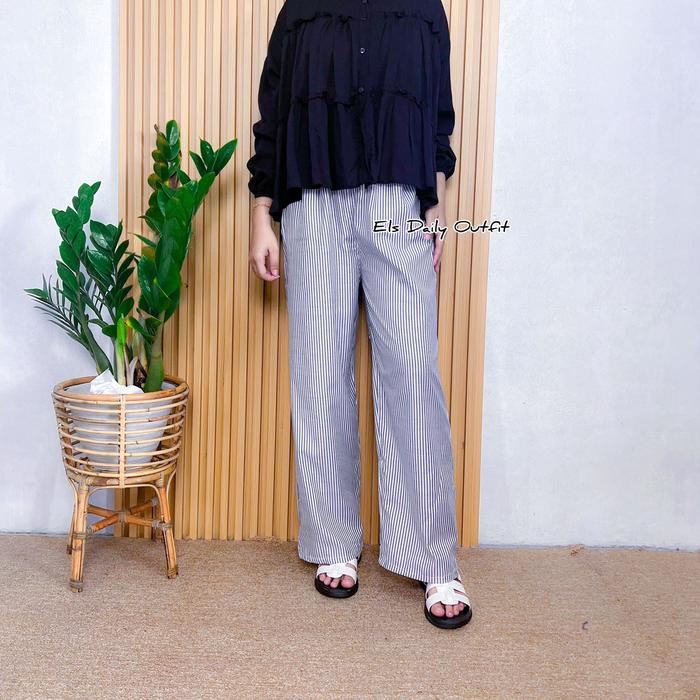 LUNERA CELANA PANJANG WANITA HIGHWAIST KATUN SALUR DAILY PANTS STRIPE - LUNERA HITAM, STANDAR