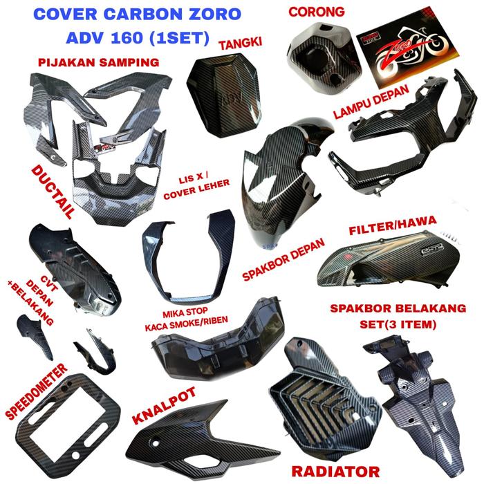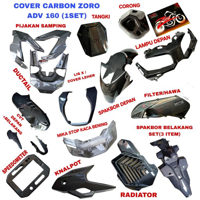 [Star]ZORO CARBON COVER MOTOR ADV 160 2024-2025 1SET CARBON HITAM IMPOR - 14 ITEM CARBON+MIKA STOP SMOKE