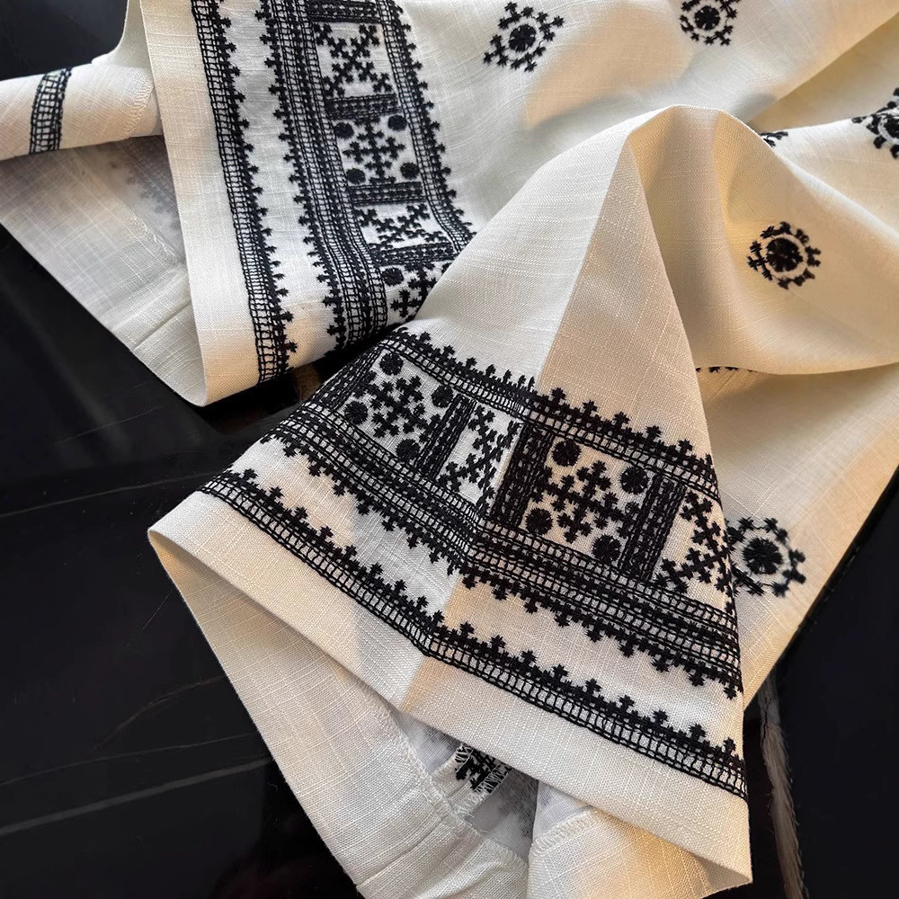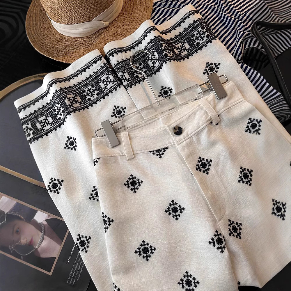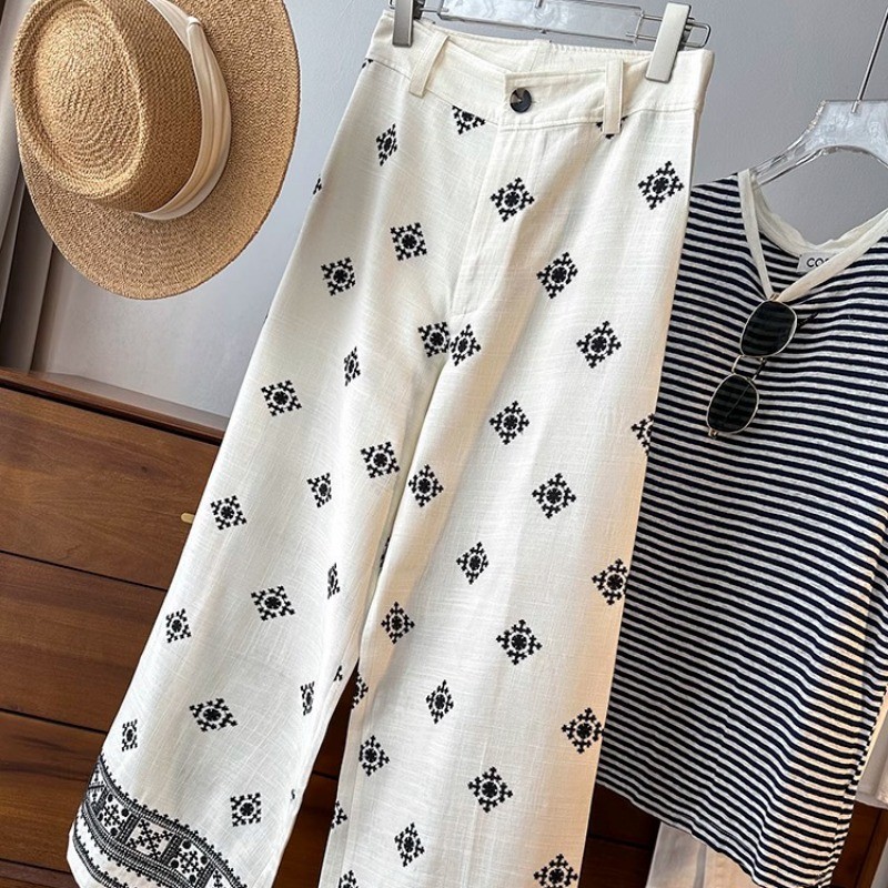 25-20611 Celana Wanita. Women's Vintage Linen Embroidered Wide-Leg Pants