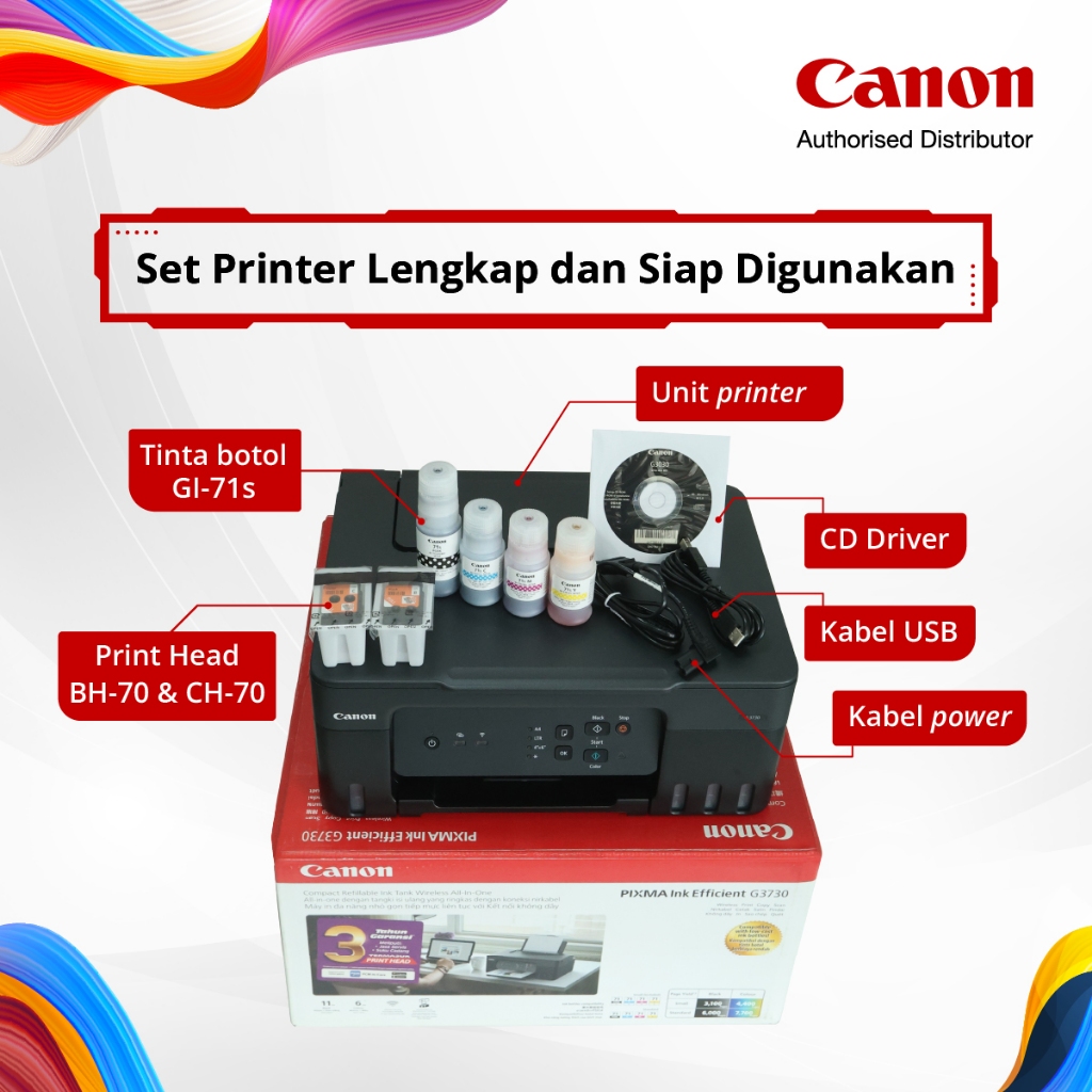 CANON PIXMA G3730 BLACK PRINTER INK TANK PRINT SCAN COPY FOTOCOPY WIFI PRINTER RUMAH PERSONAL MULTIFUNGSI ORIGINAL