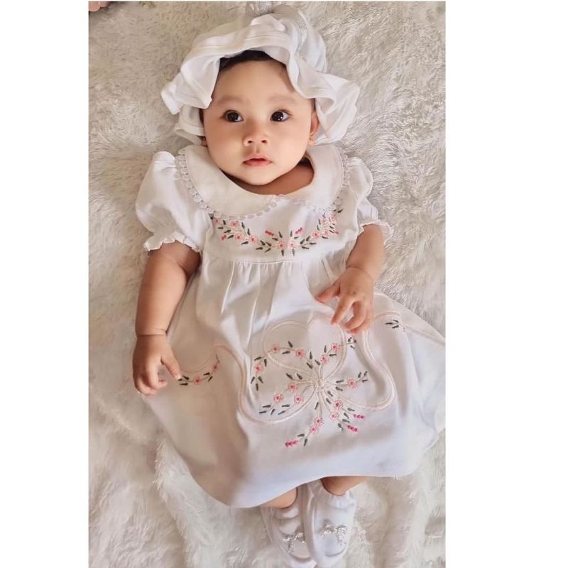 Gaun Bayi Perempuan Putih Set,Dress Bayi Putih,Gaun Aqiqah Newborngamis Mewah Aqiqah/Pure White,Baju Setelan Muslim Anak