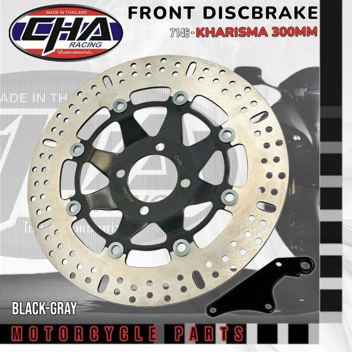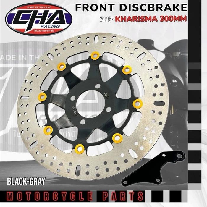 CAKRAM PIRINGAN DEPAN + BREKET KHARISMA SUPRA X 125 SUPRA FIT NEW, REVO OLD DLL UK 300MM FULL CNC - BLACK/RED