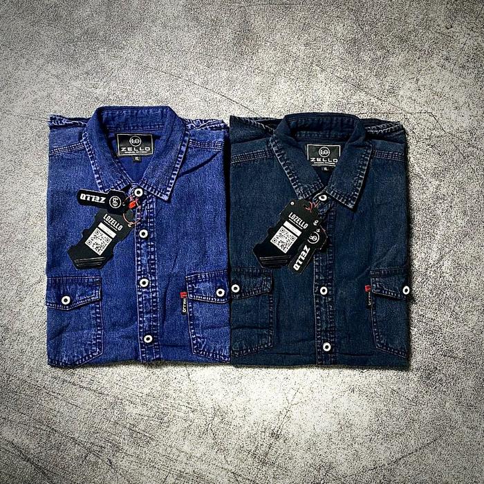 KEMEJA JEANS LENGAN PANJANG PRIA DEWASA PREMIUM DISTRO BAJU CASUAL DENIM - BLACK SNOW, M