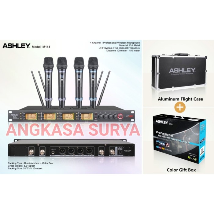 Mic Wireless ASHLEY M114 / M 114 4 Mic Pegang Handle Handheld Hardcase