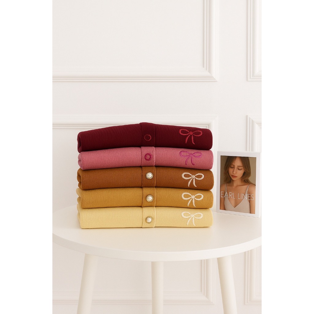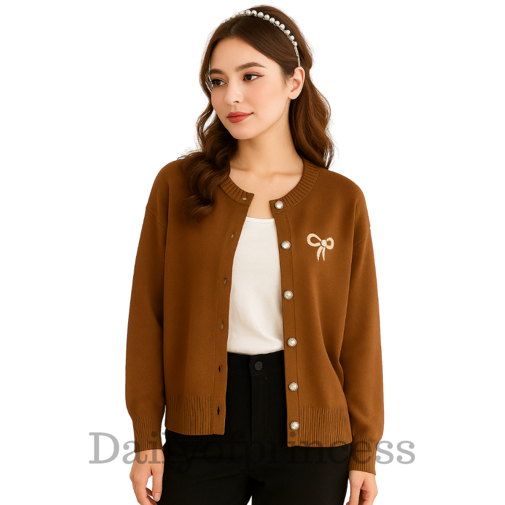 Dailyofprincess Clara Cardigan Rajut Wanita Bordir Pita Kancing Depan