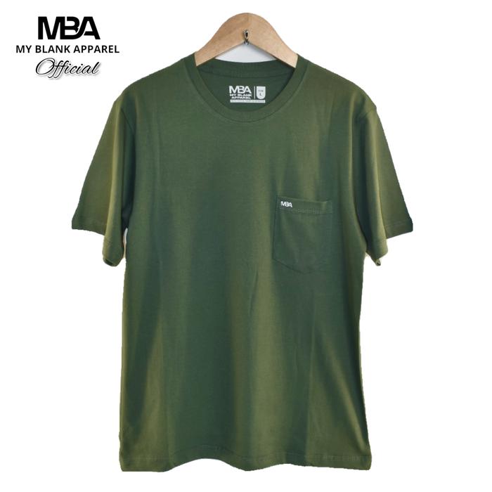 MBA MY BLANK APPAREL KAOS CKET SAKU UNISEX 100 PERSEN COTTON COMBET 24S TEBAL ADEM NYAMAN DIPAKAI SEHARIAN T-SHIRT CASUAL SIMPEL DENGAN SAKU DI DADA KIRI LOGO MBA - HIJAU BOTOL, M BB 45-60 KG
