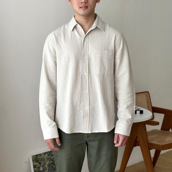 COZYCLUB LONG SLEEVE LINEN SHIRT | KEMEJA PRIA KERAH LENGAN PANJANG BAJU DARK GREY BEIGE - BLACK, S