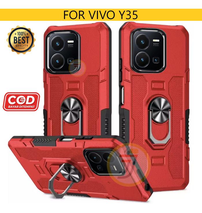 Casing Untuk vi-vo Y35 Ring Armor Robot Case Kickstand Hybrid/Ring Holder TPU Handphone Hardcase - Hitam vi-vo Y35