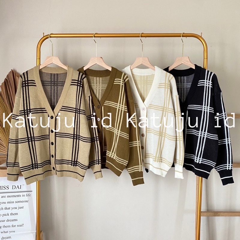 CARDIGAN RAJUT MINGYU OVERSIZE KANCING SQUARE | OUTER OUTWEAR KNIT MOTIF GARIS TEBAL