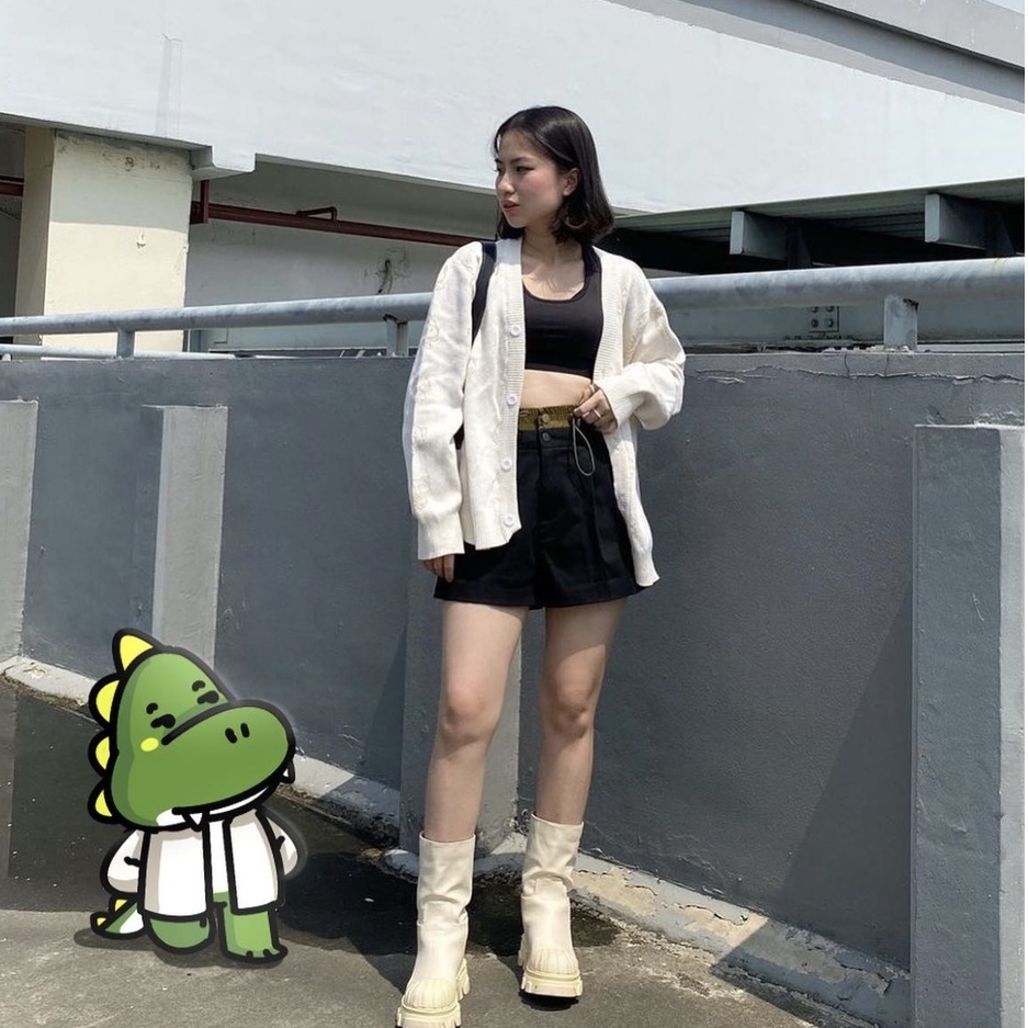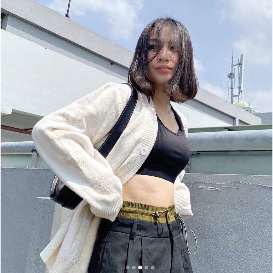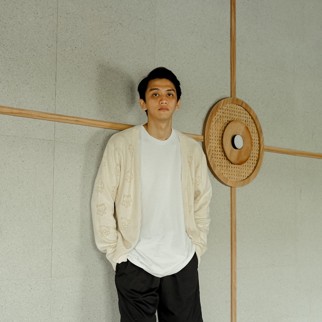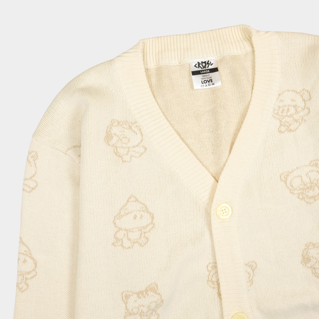 CRSL White Pattern Cardi | Cardigan Unisex Rajut Knitwear | Outer Atasan Oversize Unisex Pria Wanita
