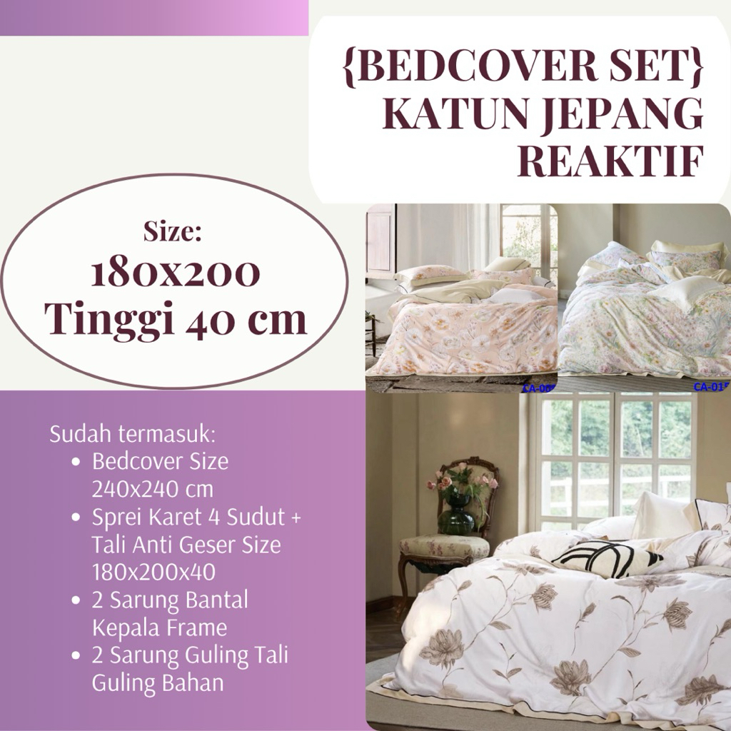 FORTUNA INDAH SPREI - Bedcover Set + Sprei KATUN JEPANG REAKTIF Size 180x200 Tinggi 40 cm Semi Tncl Original