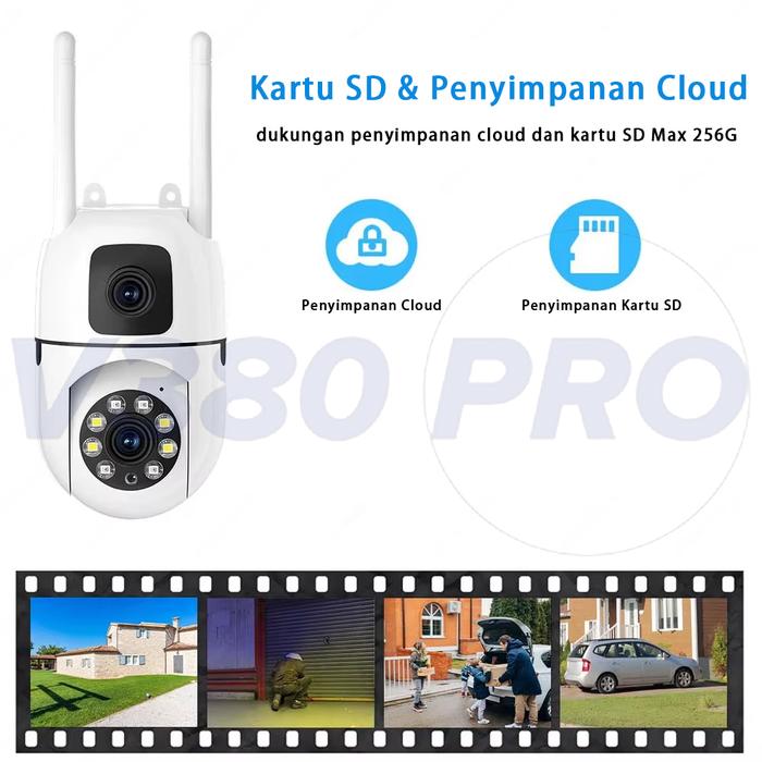 V380 PRO CCTV WIFI 1080P HD TAHAN AIR IP65 ALARM DETEKSI MANUSIA AI PENGLIHATAN MALAM INFRAMERAH - 1 LENSA CCTV, NO SD CARD