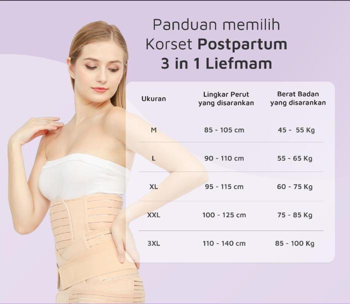 LIEFMAM KORSET STPARTUM 3 IN 1 - KORSET PASCA MELAHIRKAN MEMBENTUK PERUT HINGGA PANGGUL BAHAN SOFT LYCOTTON GRADE A VELCRO KUAT DAN RONGGA KARET LEBAR - BROWN-STANDAR, 2XL