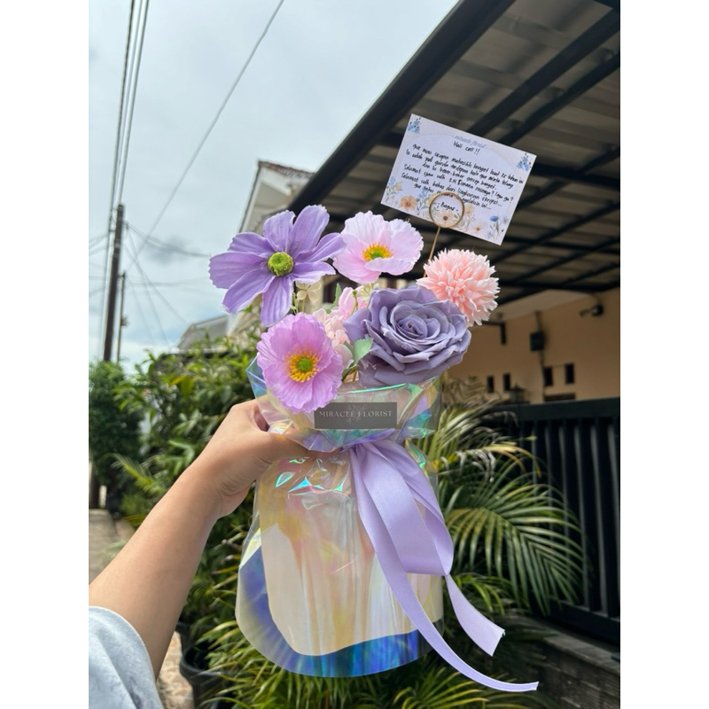 MIRACLE FLORIST KOREAN LOOK BUCKET BUCKET HOLOGRAM RUSIAN ROUND ARTIFICIAL FLOWERS BUNGA PALSU