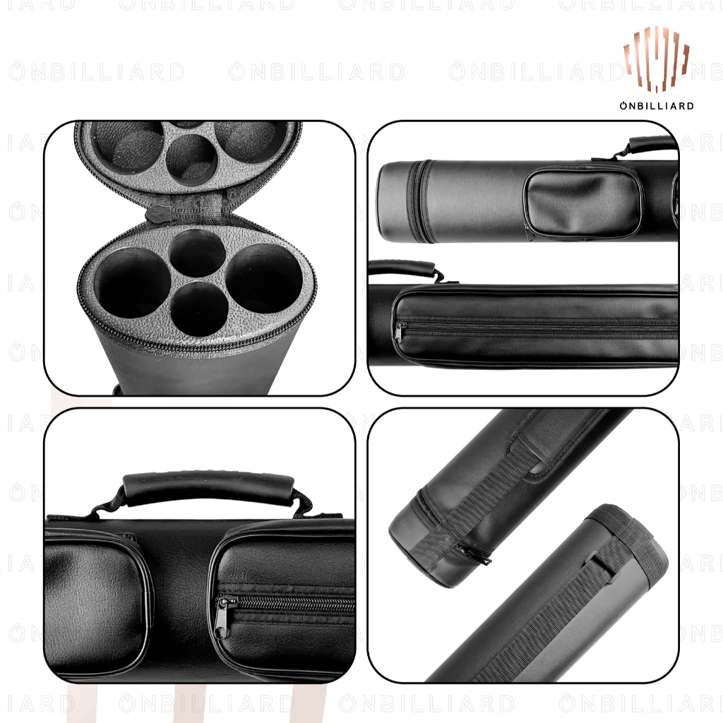 ONcase Tas Stick Billiard 2x2 Cue Case Billiard PU Leather 2 Butt 2 Shaft Hard Case 4 lubang Pipa dan Kain Biliar Billia