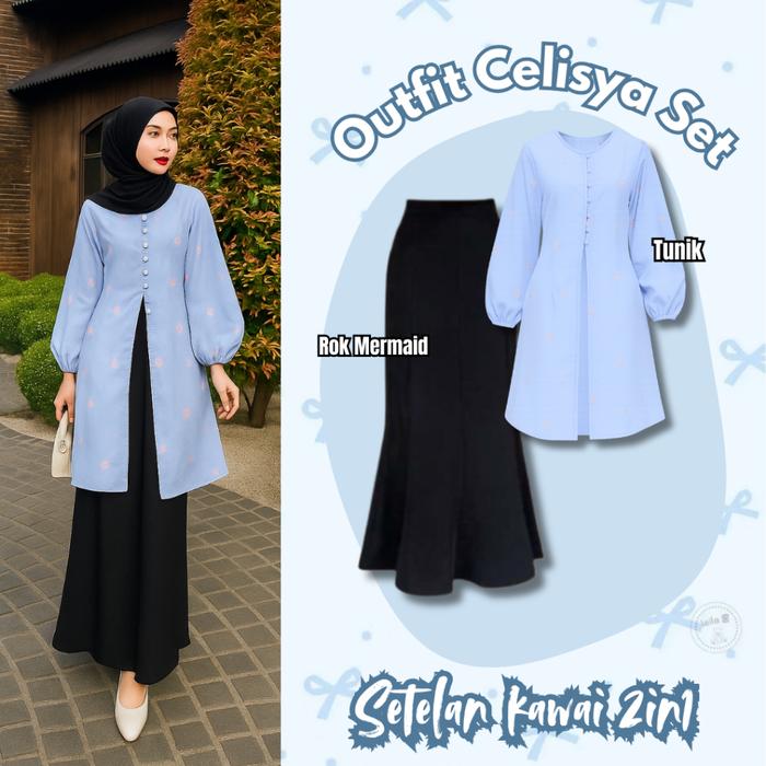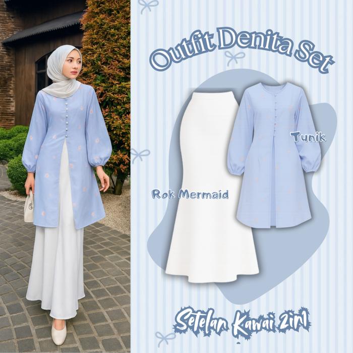 TREND TERPULER 2026 SUGARINGCANDYSS - OUTFIT WANITA 3IN1 DENITA SET | TUNIK MELAYU, ROK MERMAID, PASHMINA CERUTI | SETELAN OOTD PEREMPUAN BERHIJAB - SET HIJAB 3IN1