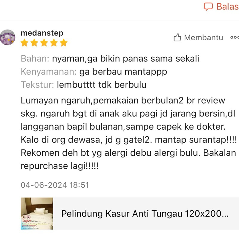 Sarung Gulung Anti Tungau Katun Polyester 73x100