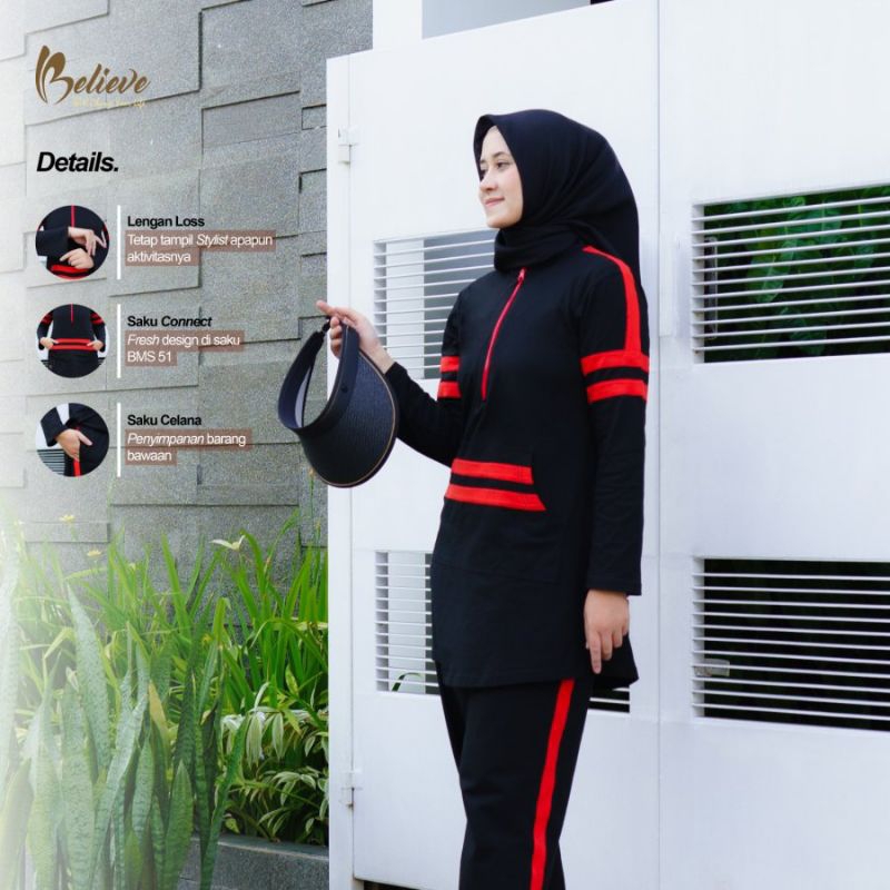 Setelan Kaos Olahraga Panjang Wanita Muslimah Setelan Sport Ngegym Tenis Badminton Senam Jogging