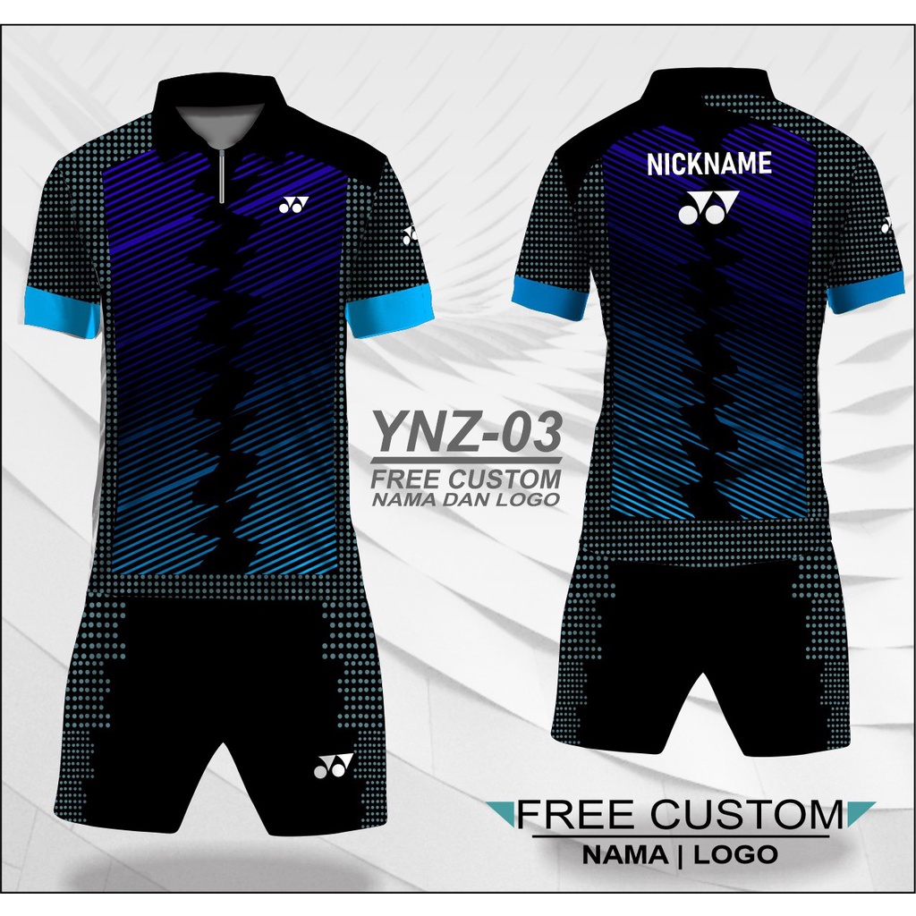 Setelan jersey dan celana badminton zipper dada baju kaos bulu tangkis