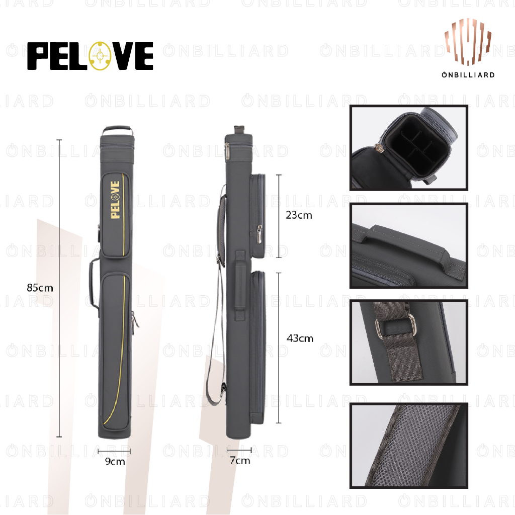 PELOVE HQ-8024 Tas Stick Billiard 2x3 Cue Soft Case 2 Butt 3 Shaft 5 Lubang Sekat Kain Billiard Biliar Billiyar