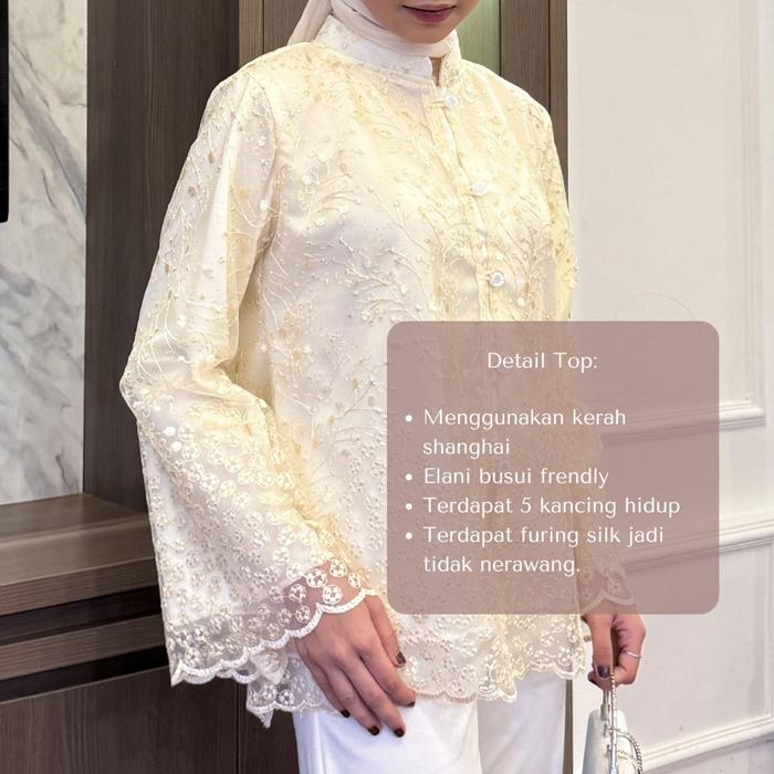 TREND TERBARU ELANI LACE SERIES READY | ONE SET | KURUNG MALAY SERIES |SABYYHA.ID - BUTTER CREAM TOP, SMALL SIZE