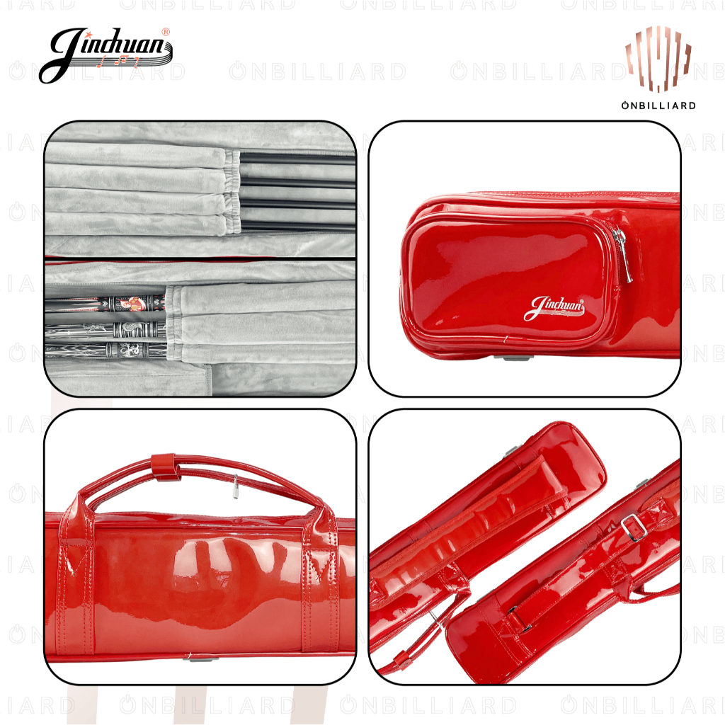 JINCHUAN C-2036 Tas Stick Billiard 3x4 Cue Leather Tas Kulit 3 Butt 4 Shaft 7 Lubang Sekat Kain Billiard Biliar Billiyar