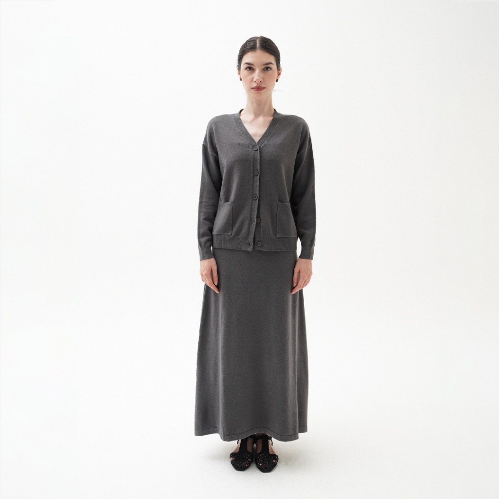 Queensland Pocketed Cardigan Wanita Lengan Panjang I31000175Q Abu