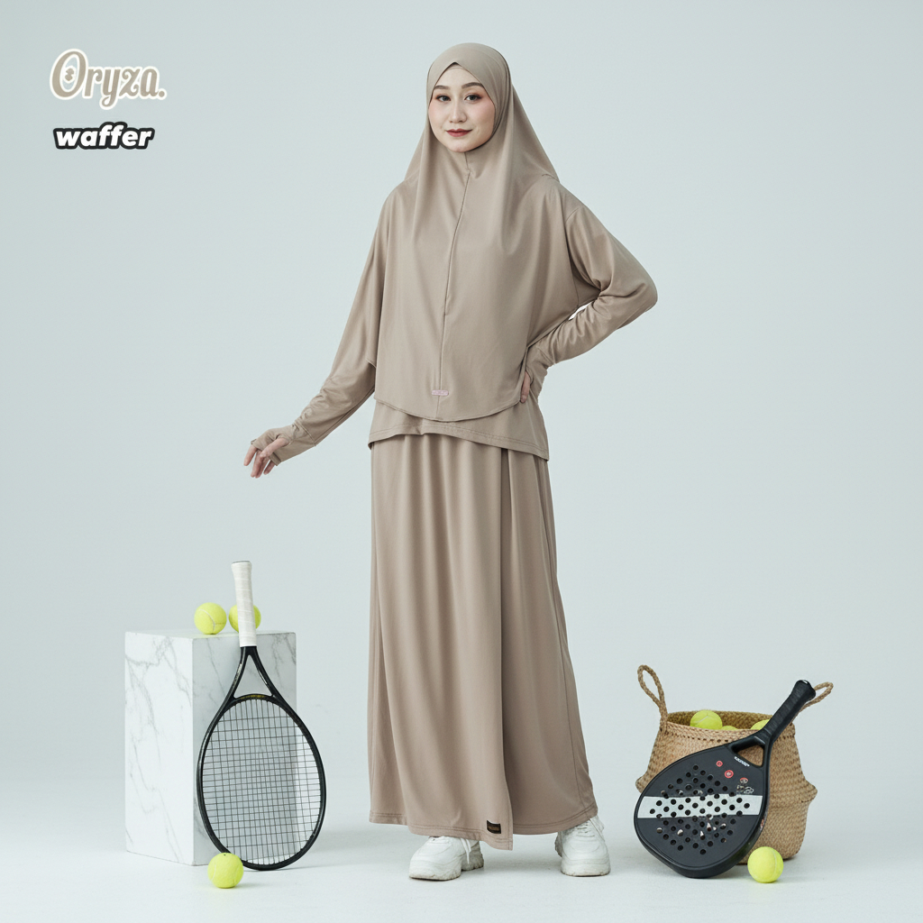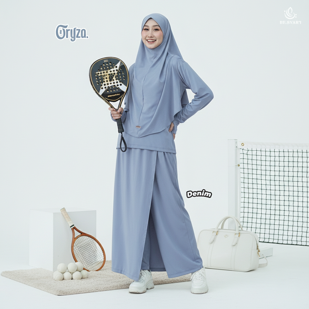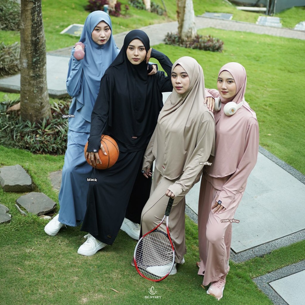 BE.SYAR'I x ZANEVA – Oryza Full Set Baju Olahraga Muslimah | Hijab Instan + Baju + Celana Rok Syari