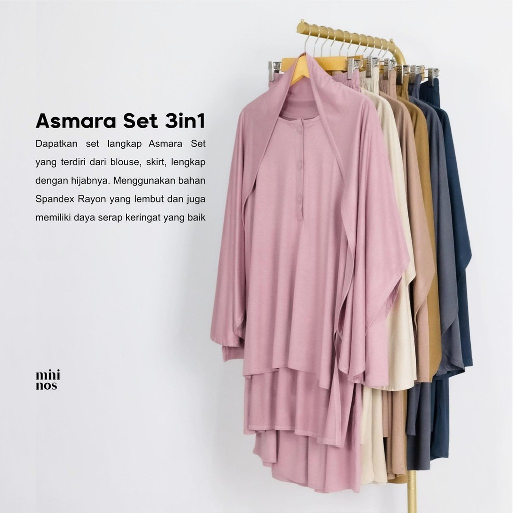 Mininos Asmara Set 3in1 | Setelan Atasan Daily Olahraga Remaja Muslim Baju Atasan Bawahan Kekinian Nyaman