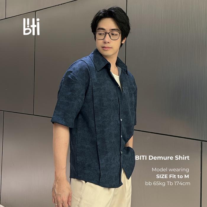 BITI DEMURE SHIRT | KEMEJA PRINT MOTIF DENIM LENGAN PENDEK BIRU NAVY PRIA 【M】40-55KG K1233- BIRU - DEMURE NAVY, FIT TO M