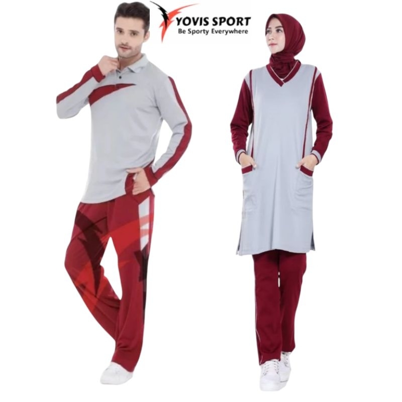 Setelan Baju Senam Muslimah Yovis Sport Wanita & Pria | Baju Olahraga Couple Adem Lengan Panjang
