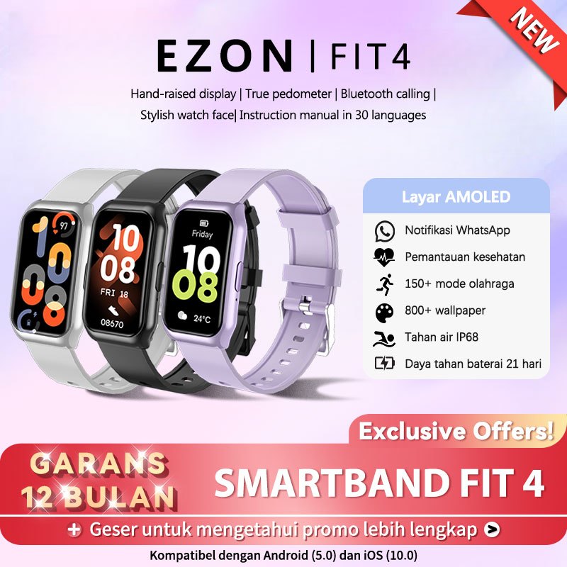 Ezon Fit4 Smartband Bluetooth Call Health Management Waterproof 100+ Jam Tangan Smartwatch Original Pria Wanita